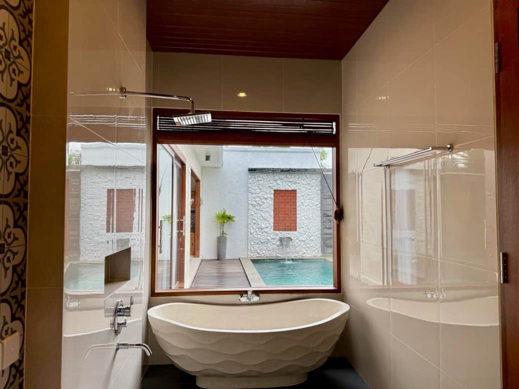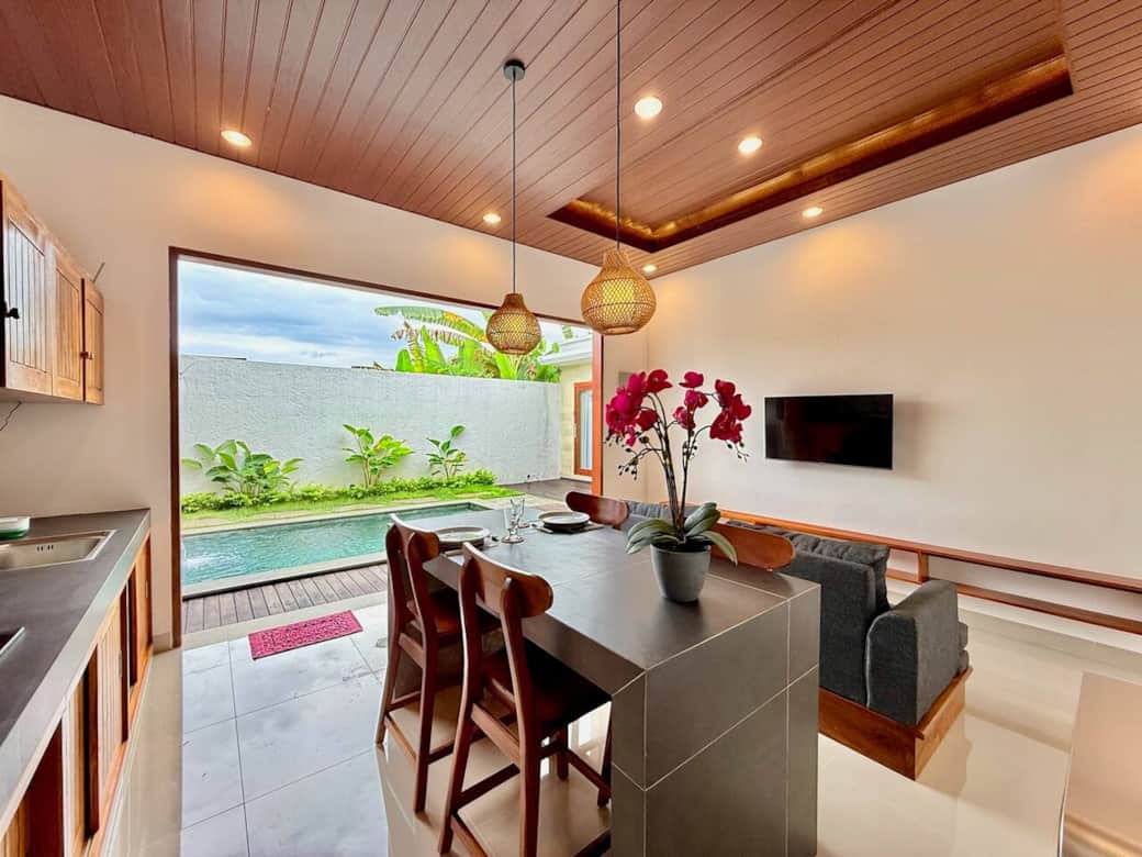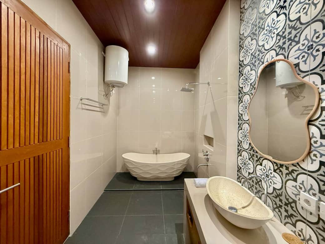Die voll ausgestattete Küche, zwei Badezimmer mit Badewannen und die ruhige Umgebung schaffen ein entspanntes Zuhause auf Bali. Gleichzeitig sind Cafés, Yoga-Studios, Fitnessmöglichkeiten und internationale Schulen schnell erreichbar.
